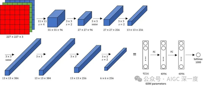 这一飞跃的关键在于他们创造性地使用了两块NVIDIA GPU进行并行计算训练。AlexNet的胜利不仅宣告了深度学习时代的全面到来,更确立了GPU作为AI计算核心硬件的地位。