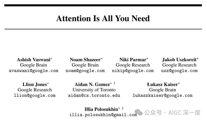 2017年,谷歌Brain团队的八位研究员发表了《Attention Is All You Need》论文,提出了Transformer架构。